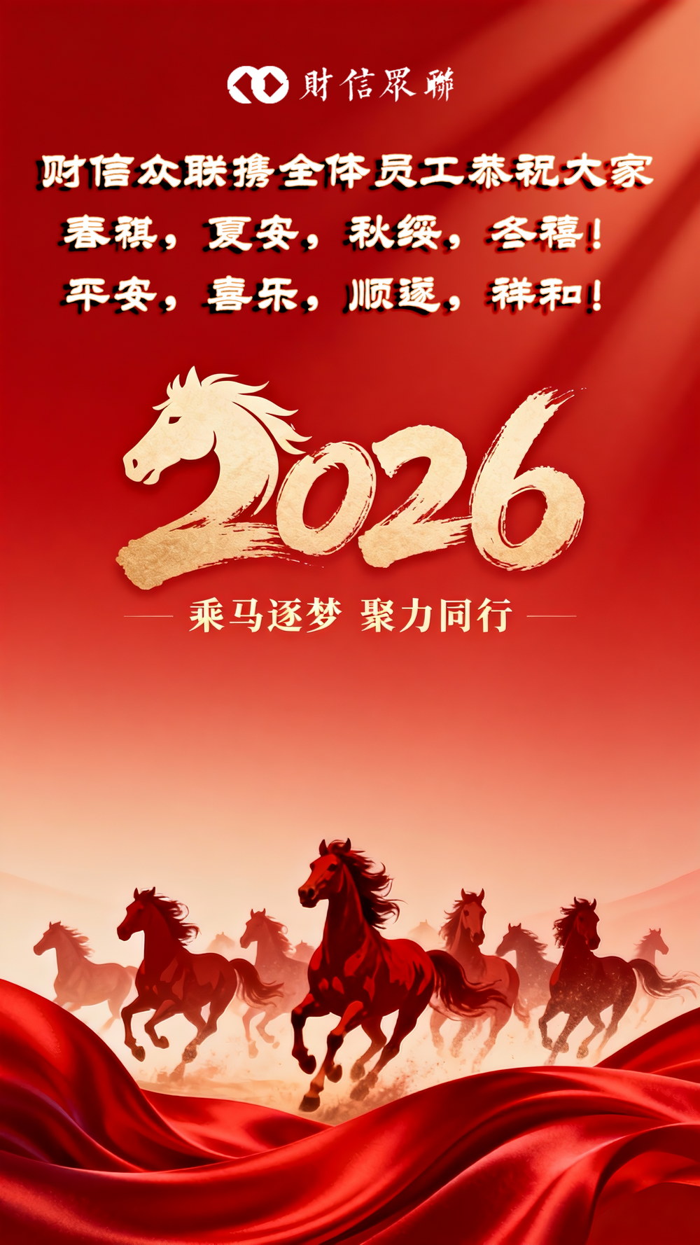 以岁月之名,愿你、愿我、愿世间,昭昭如愿、岁岁安澜;顺颂时宜、万事从欢。自此,踏浪乘风,皆登云顶,振翅扬帆,尽揽星河。在这辞旧迎新的美好时刻, 财信众联携全体员工带着满心的感恩与喜悦,提前向大家送上最诚挚的祝福!